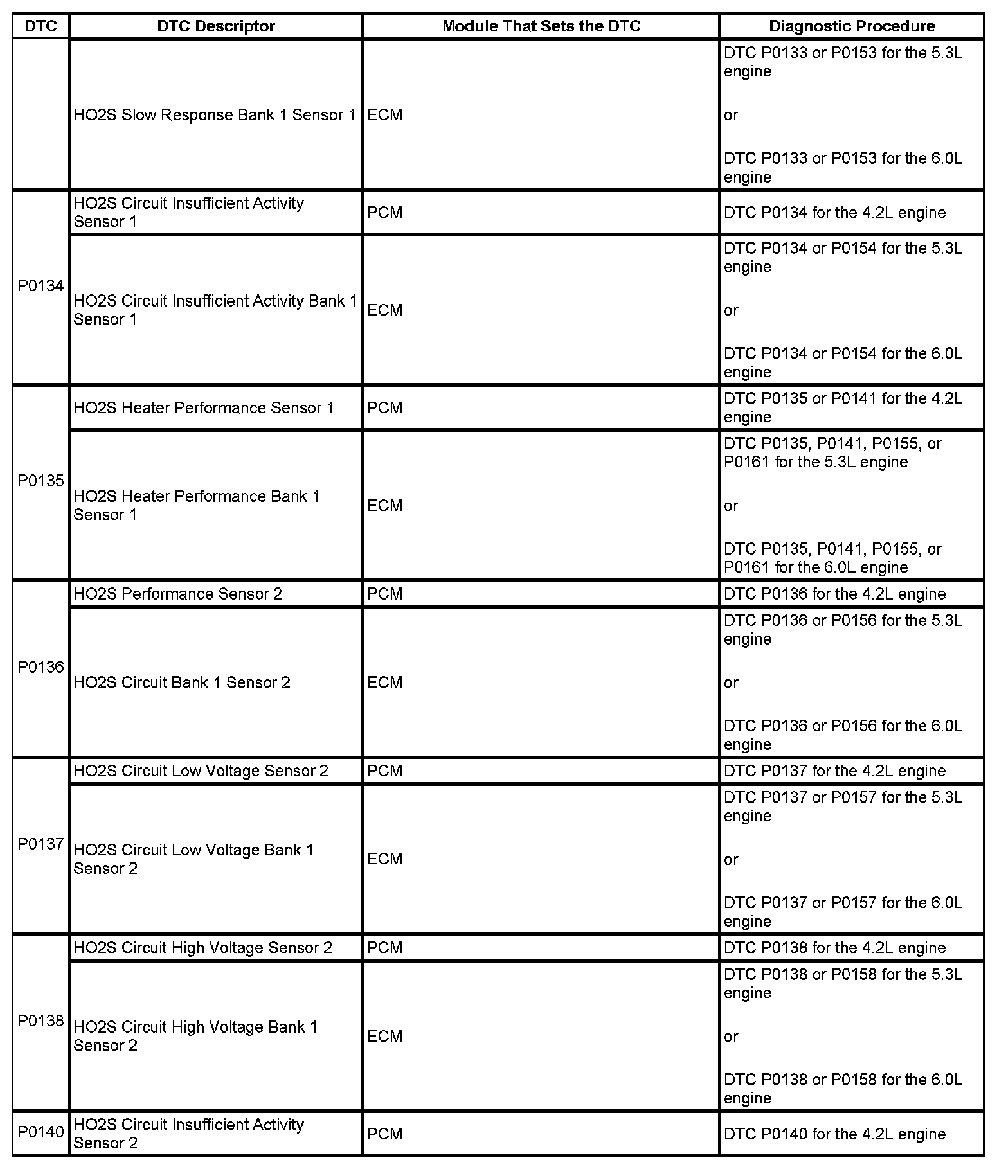 DTCs P0134 - P0140: