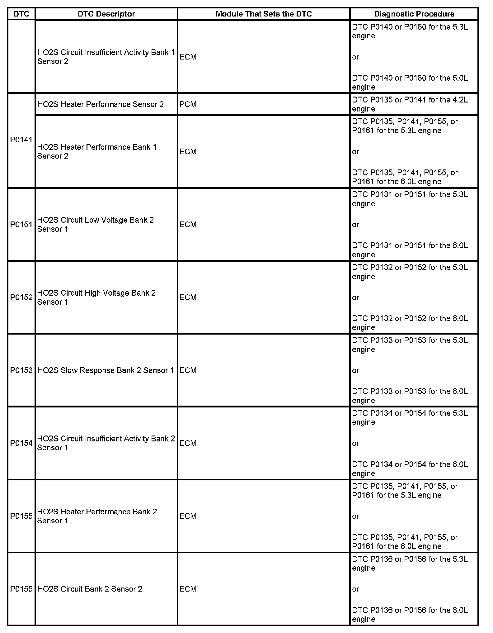 DTCs P0141 - P0156: