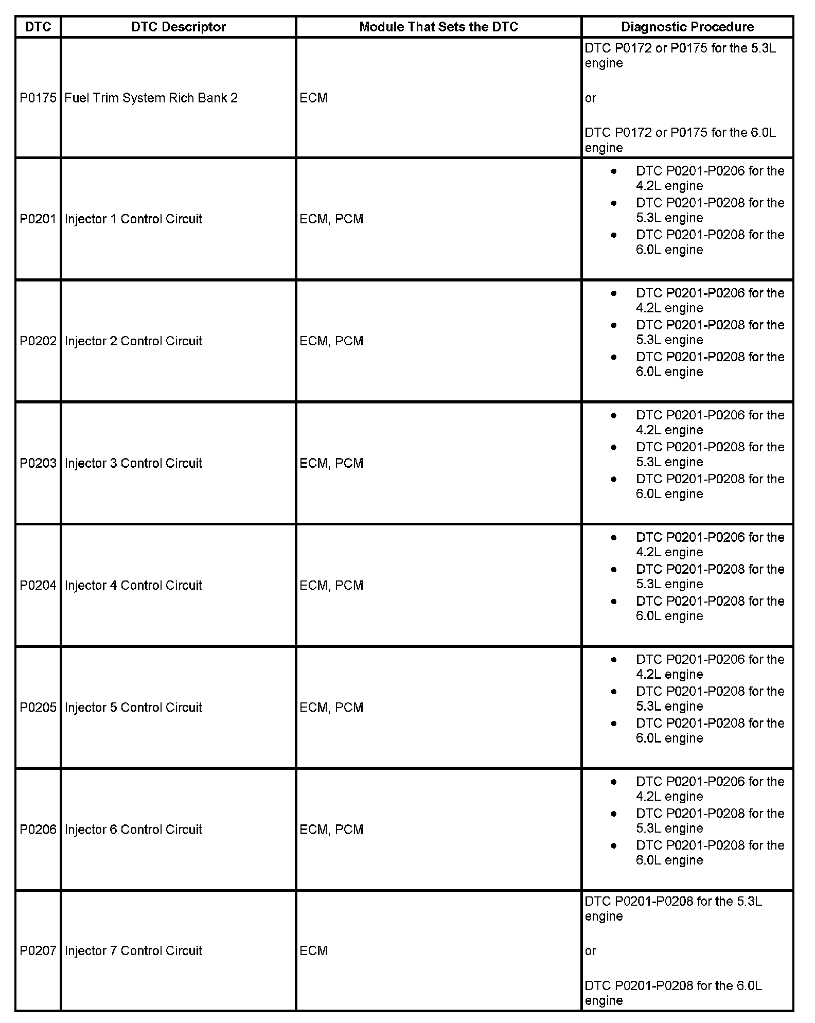 DTCs P0175 - P0207: