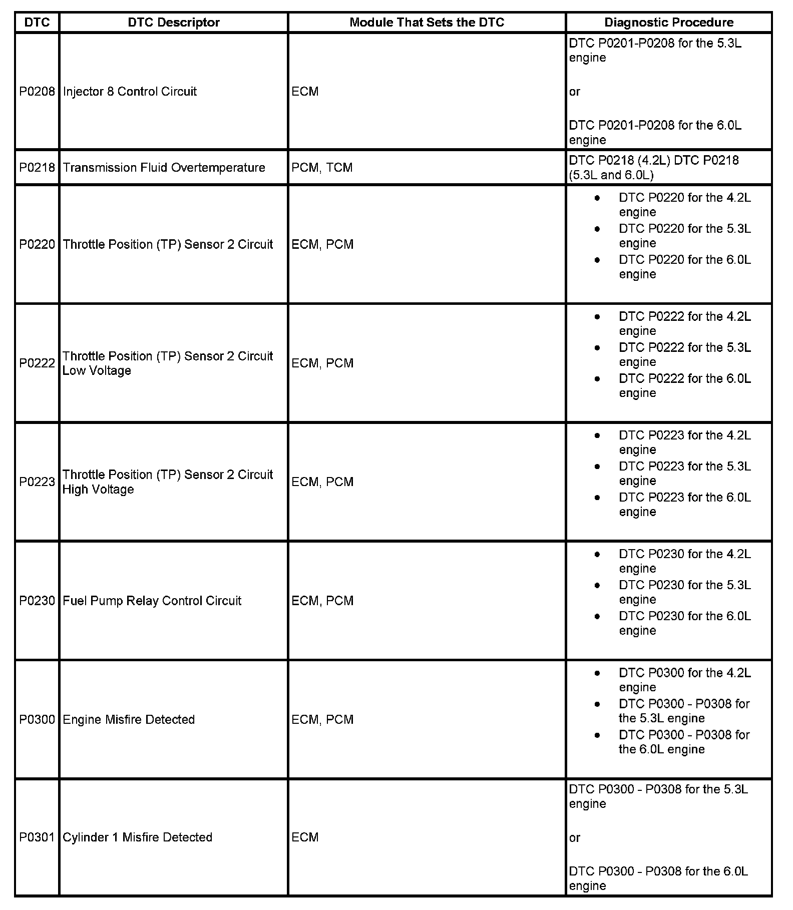 DTCs P0302 - P0315: