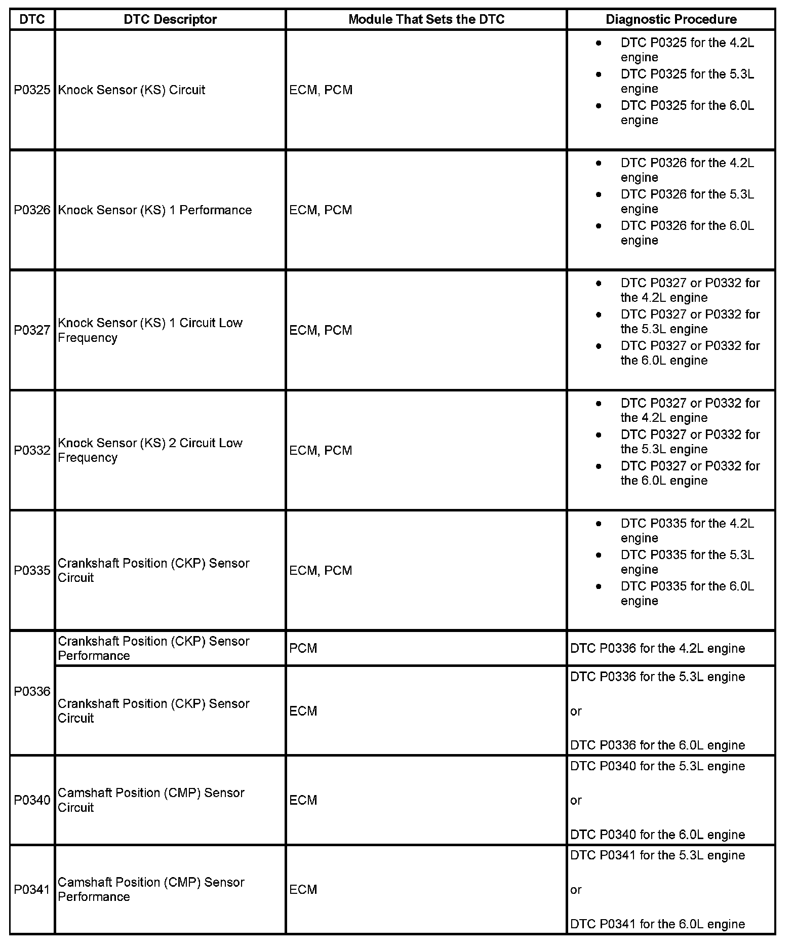 DTCs P0325 - P0341: