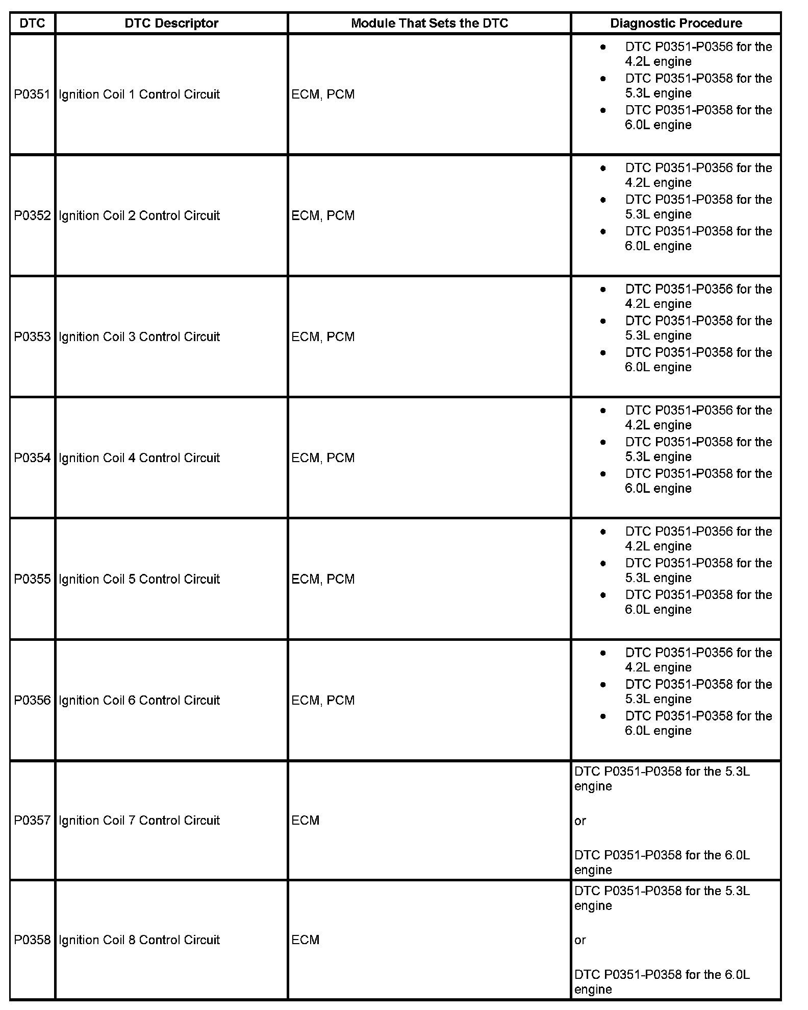 DTCs P0351 - P0358: