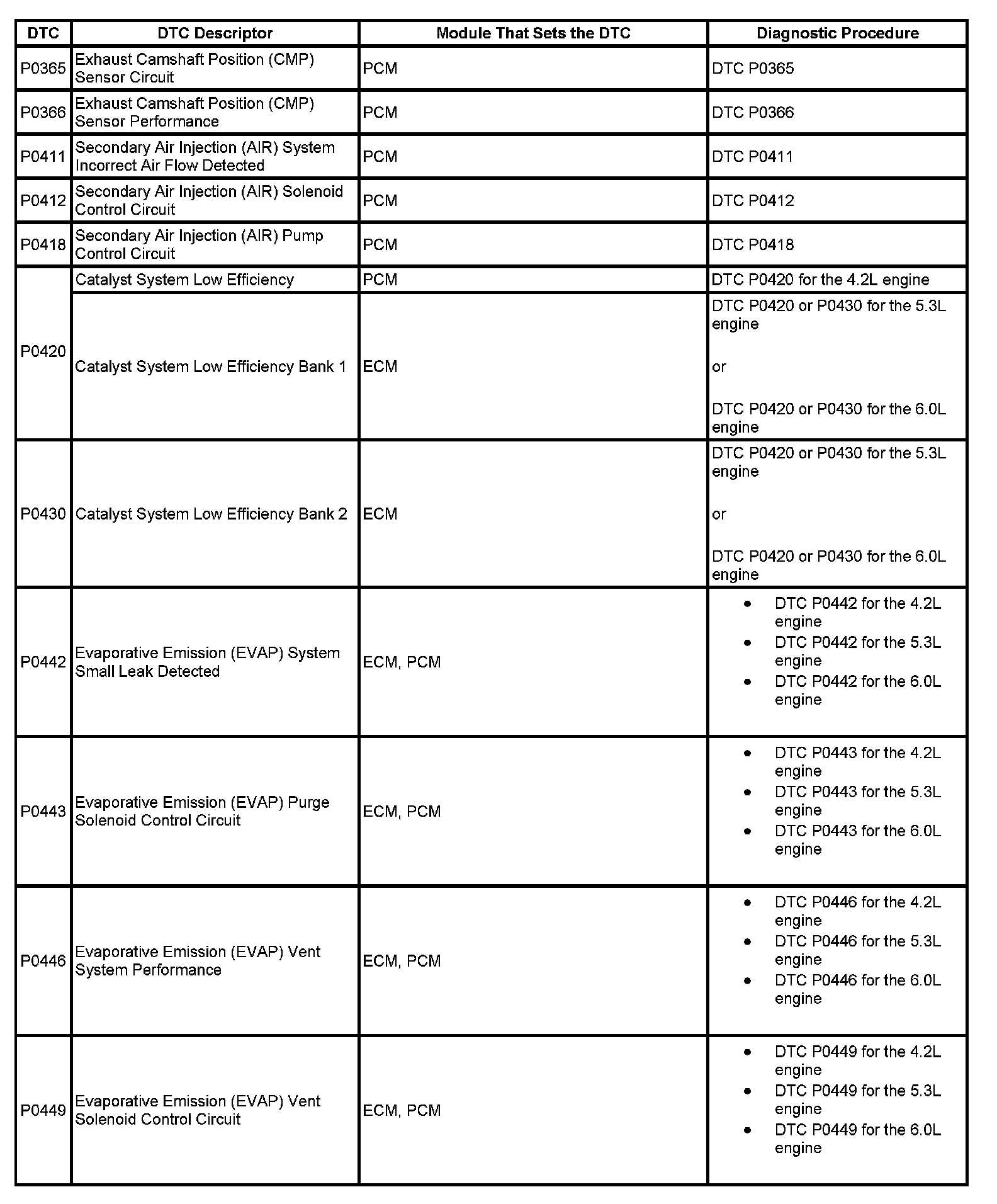 DTCs P0365 - P0449: