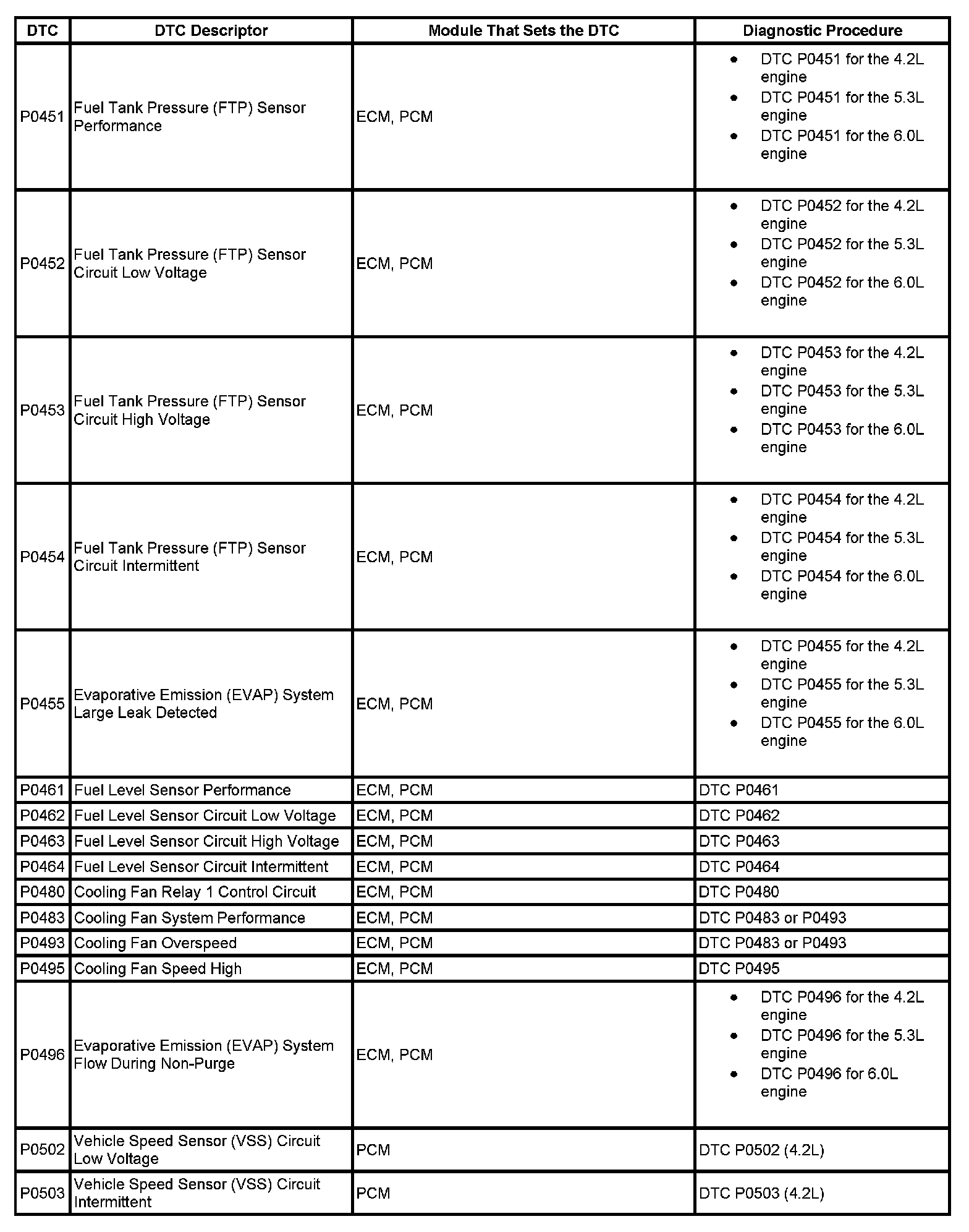 DTCs P0451 - P0503: