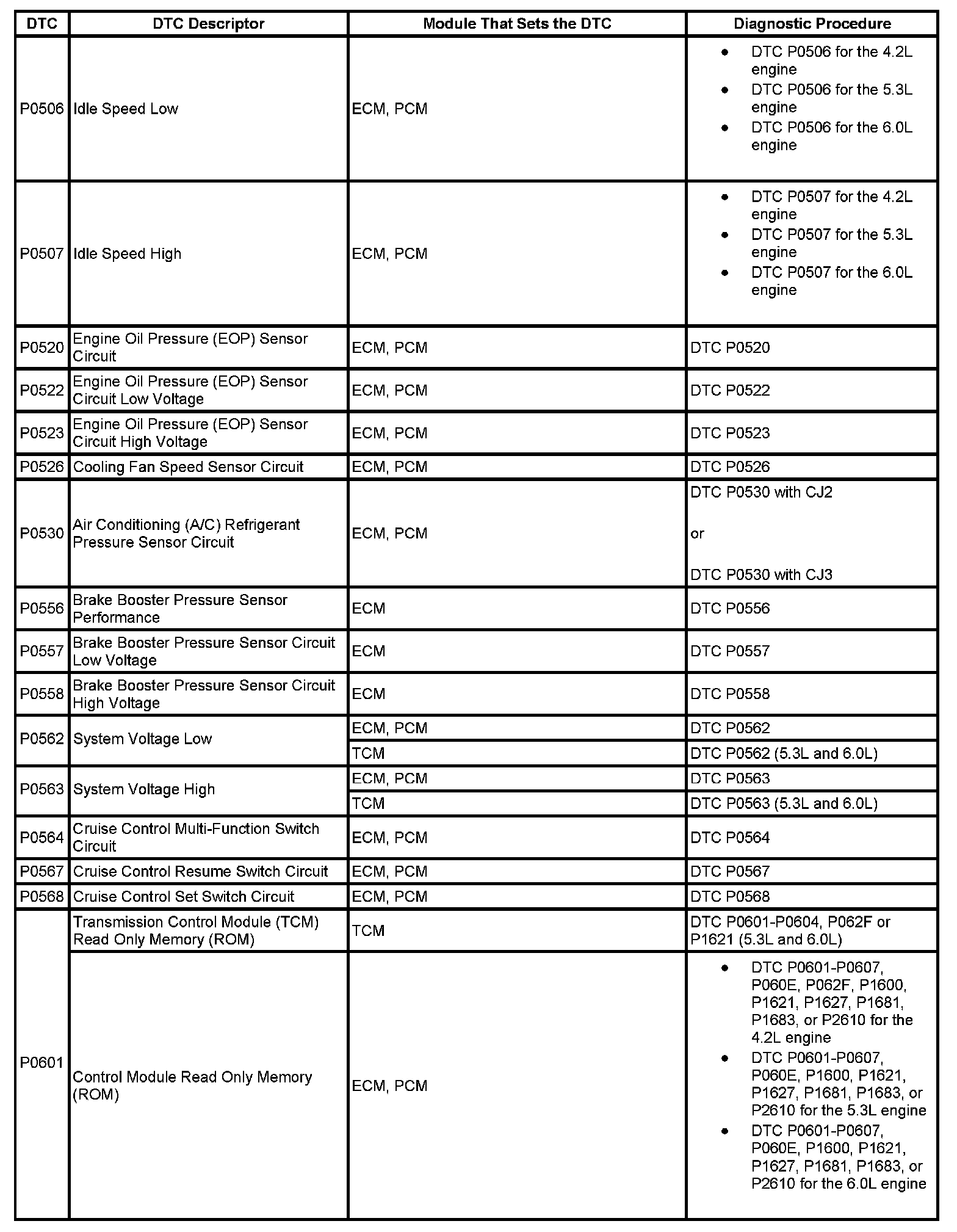 DTCs P0506 - P0601:
