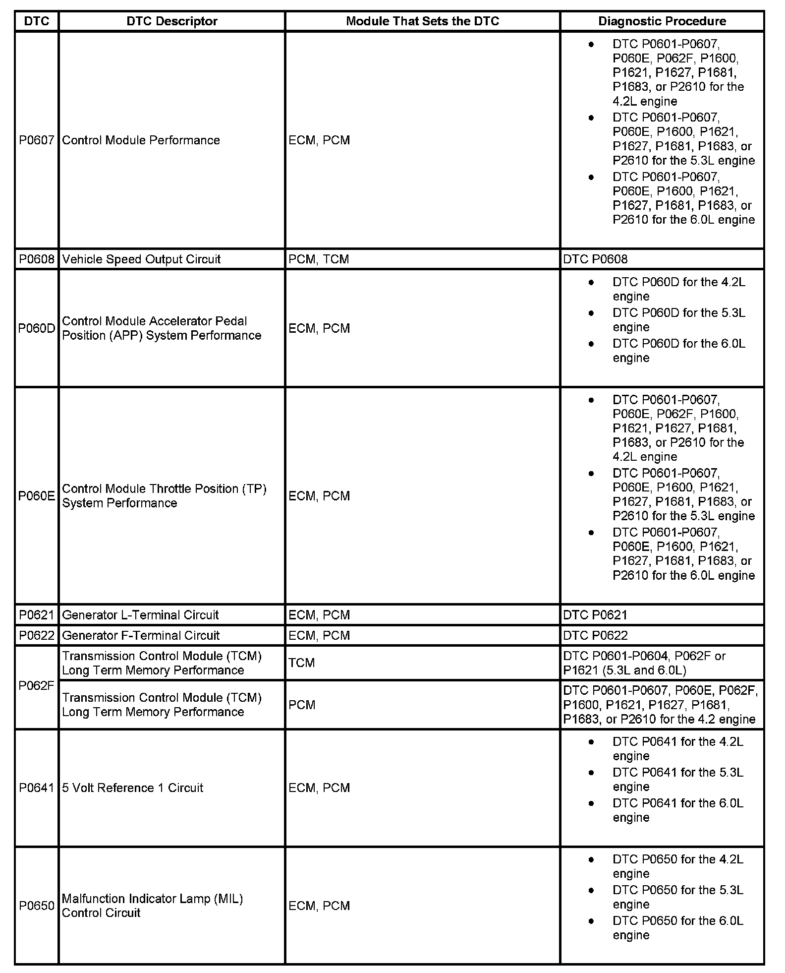 DTCs P0607 - P0650: