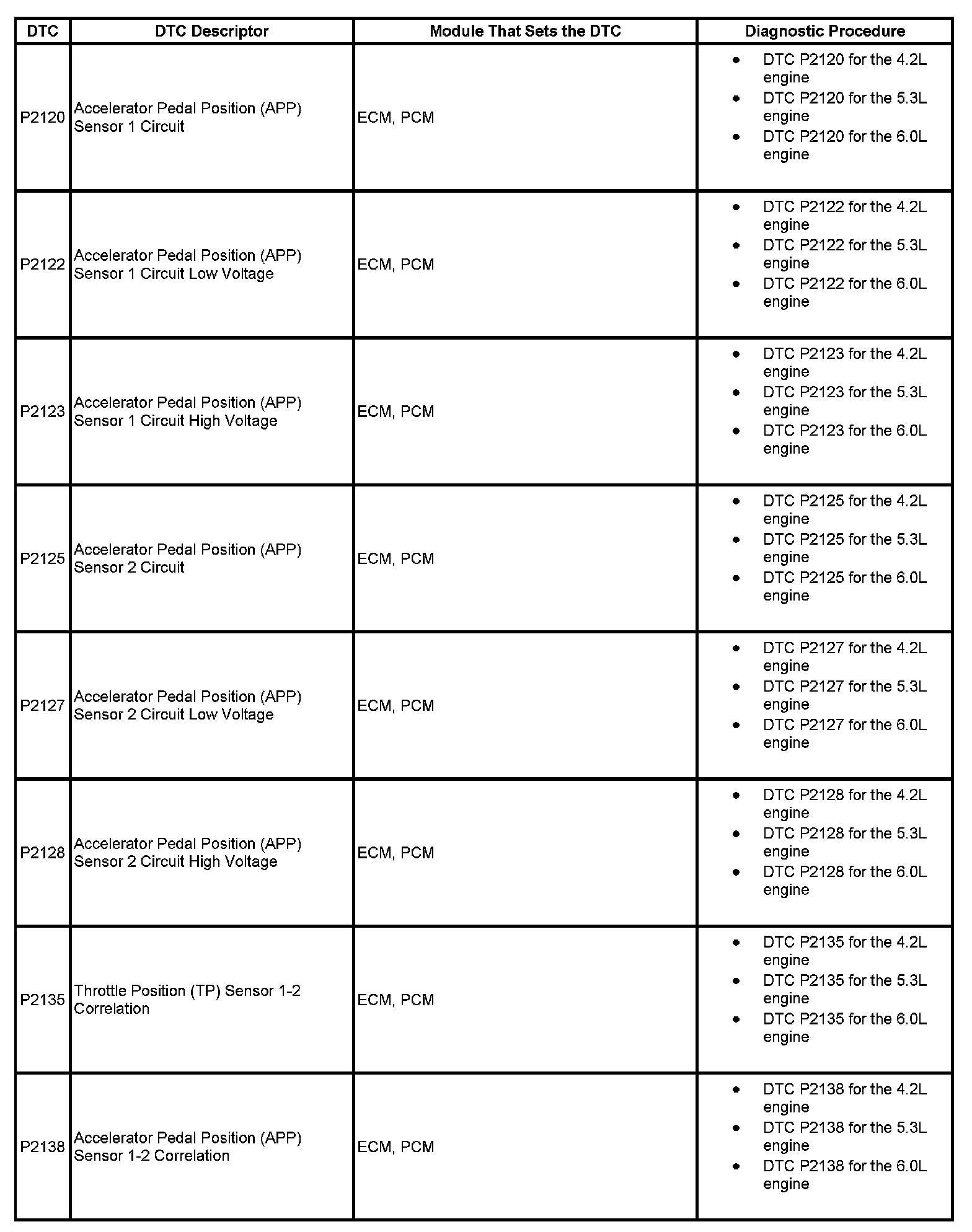 DTCs P2120 - P2138: