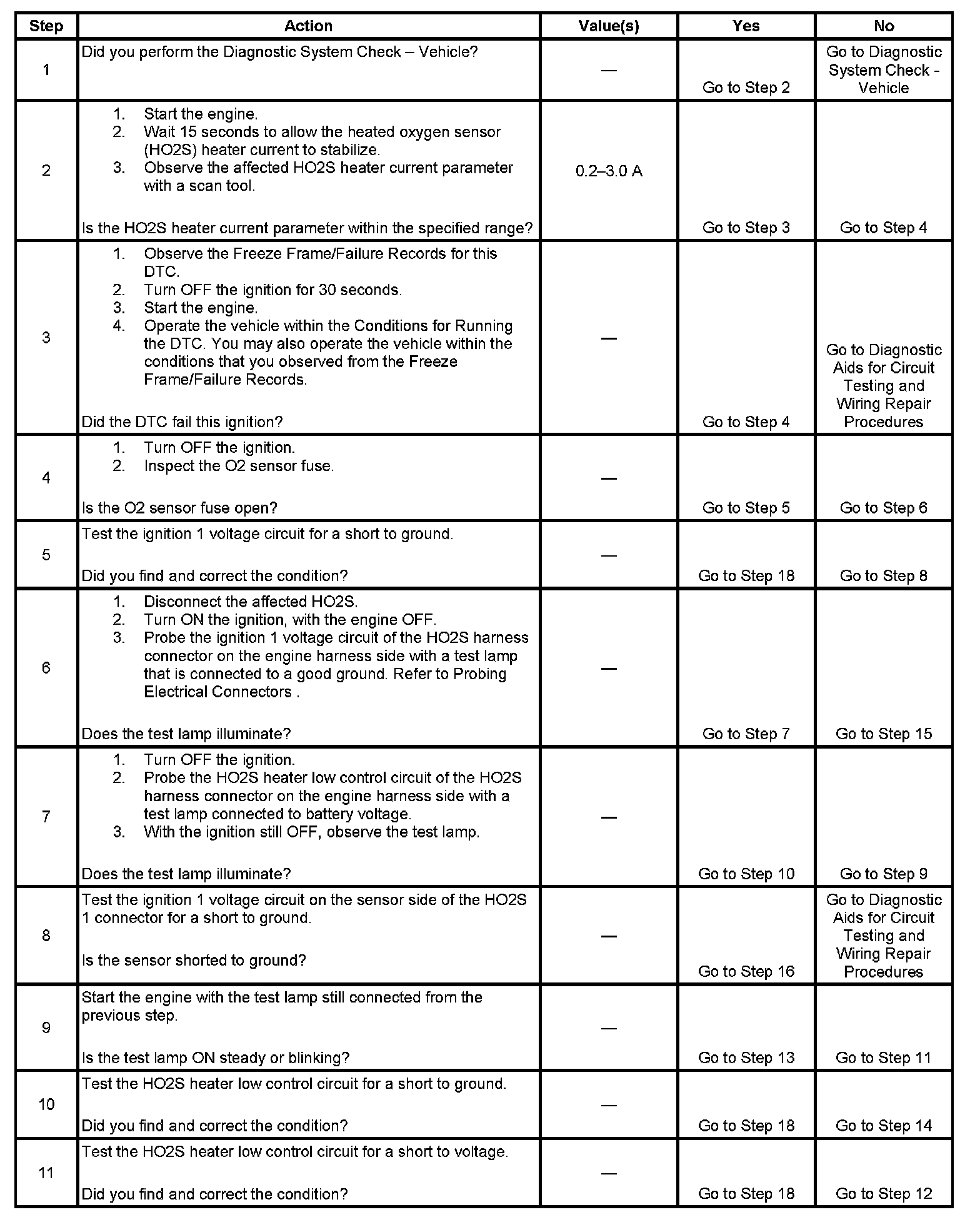 Heated oxygen sensors (HO2S) are used for fuel control and post catalyst monitoring. Each HO2S compares the oxygen content of the surrounding air with the oxygen content in the exhaust stream. The HO2S must reach operating temperature to provide an accurate voltage signal. A heating element inside the HO2S minimizes the time required for the sensor to reach operating temperature. Voltage is provided to the heater by the ignition 1 voltage circuit through a fuse. With the engine running, ground is provided to the heater by the HO2S heater low control circuit, through a low side driver within the powertrain control module (PCM).
