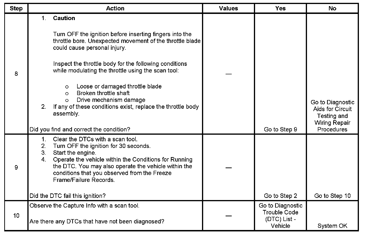 9. When the PCM detects a condition within the throttle actuator control (TAC) system, other DTCs may set due to the many redundant tests run continuously on this system. Locating and repairing one individual condition may correct more than one DTC. Keep this in mind when reviewing captured DTC info.