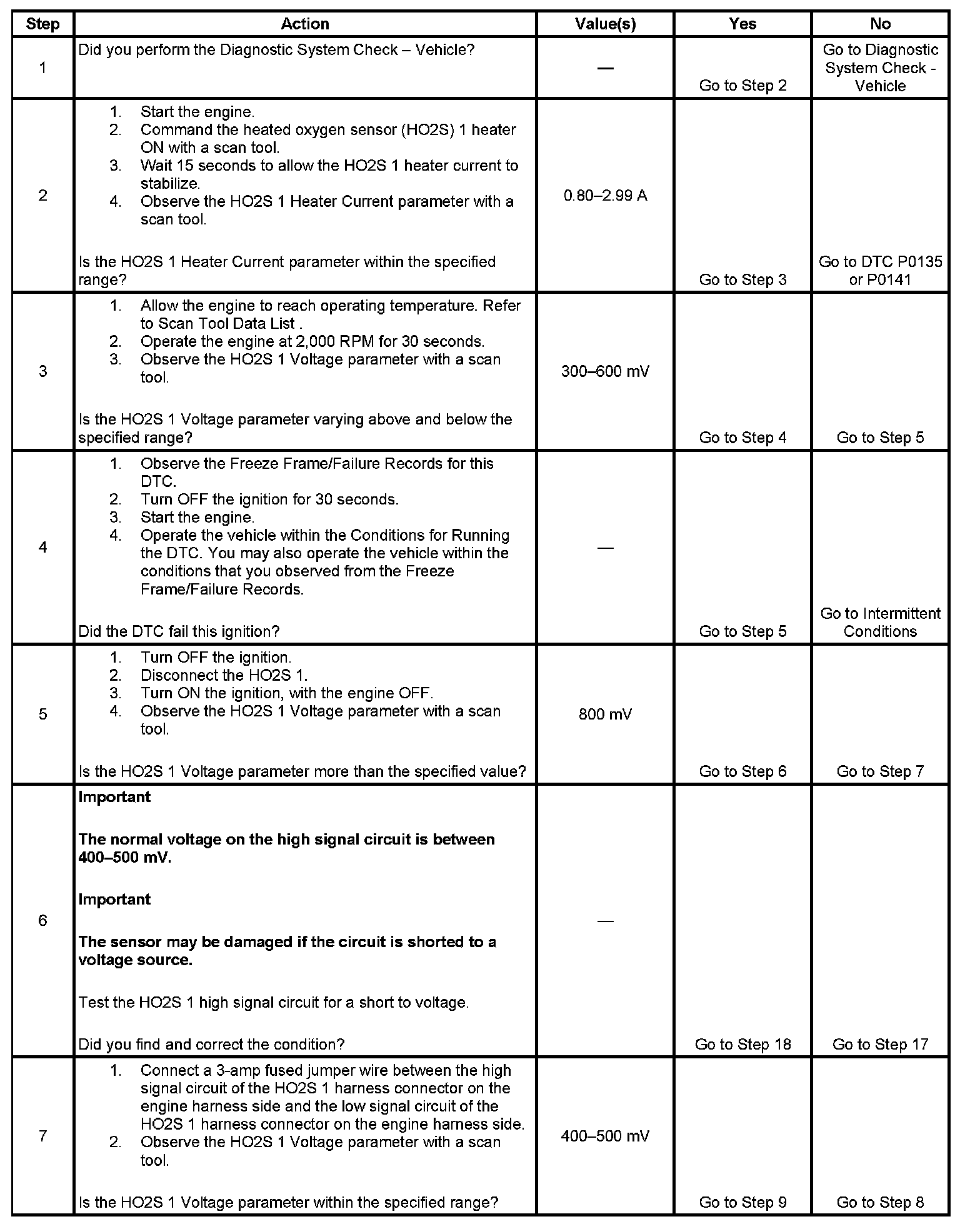 DTC P0130 HO2S Circuit Sensor 1