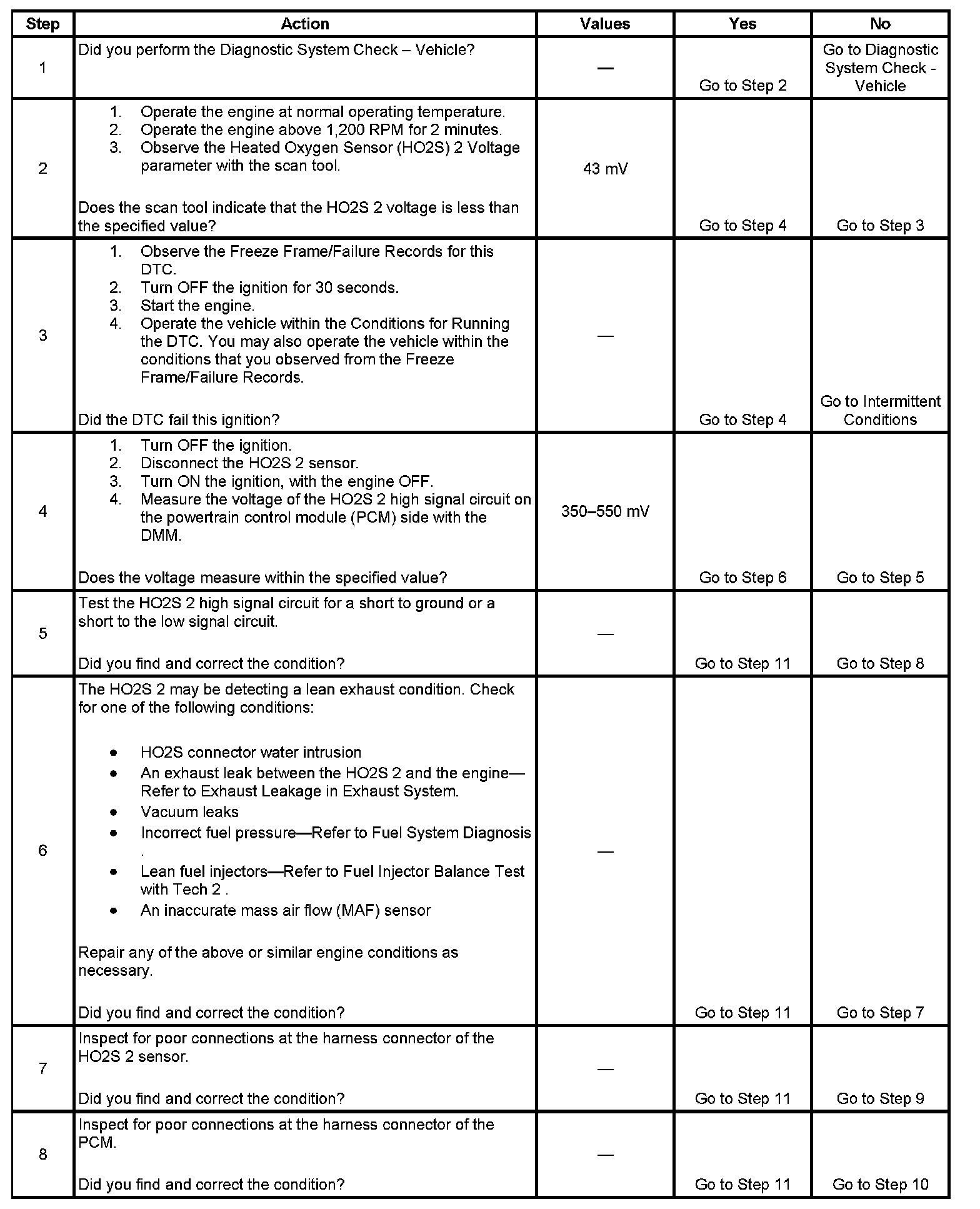 - The PCM detects that the HO2S 2 parameter is less than 43 mV.