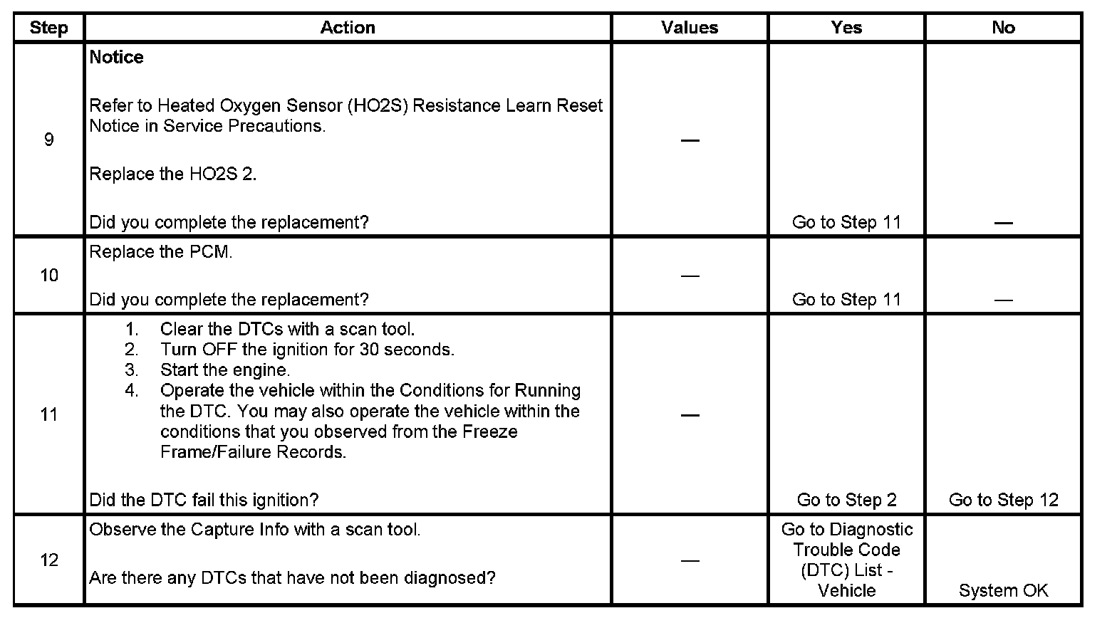 - A current DTC, Last Test Failed, clears when the diagnostic runs and passes.