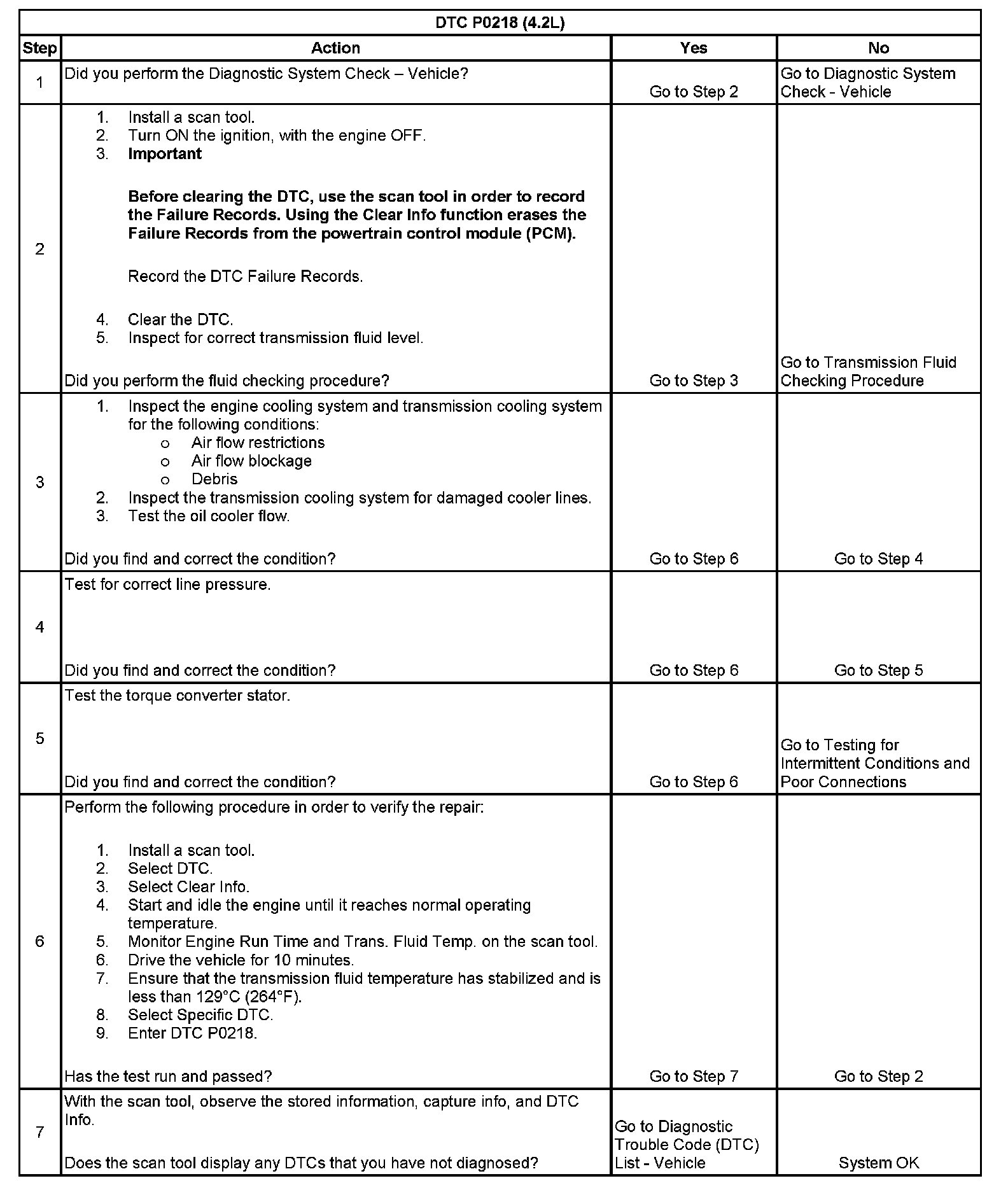 When the powertrain control module (PCM) detects a high transmission fluid temperature (TFT) for a long period of time, then DTC P0218 sets. DTC P0218 is a type C DTC.