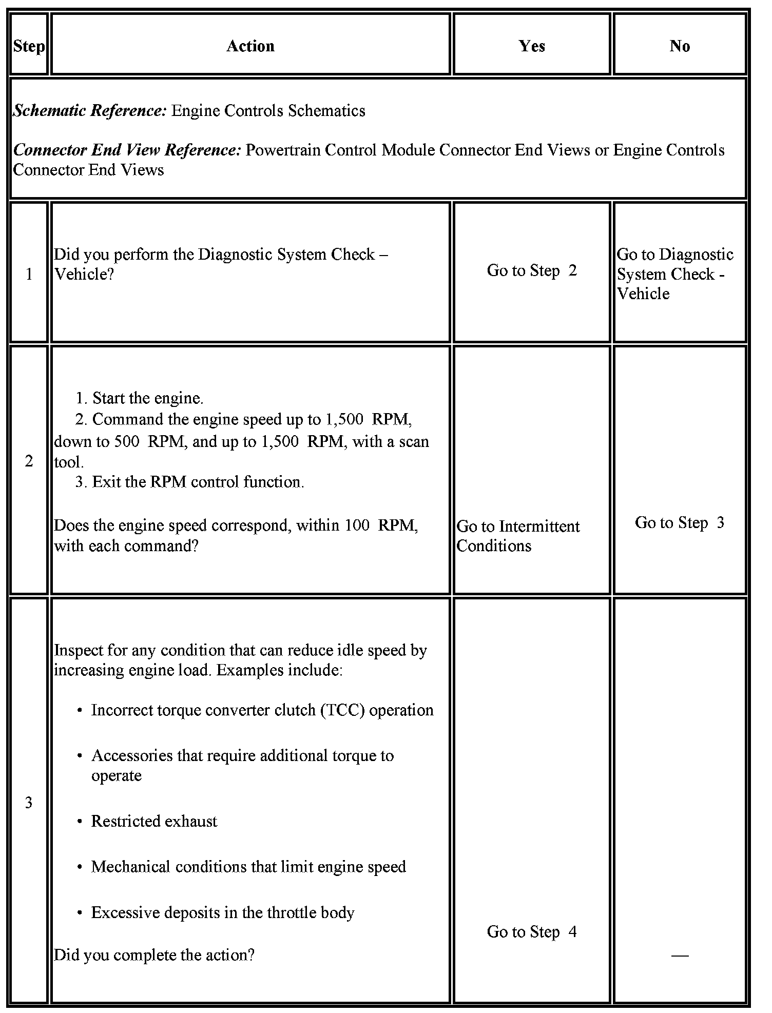 2. This test determines whether the engine can achieve the commanded RPM. If the engine does not reach the commanded RPM, the test determines whether the RPM is too high or too low.