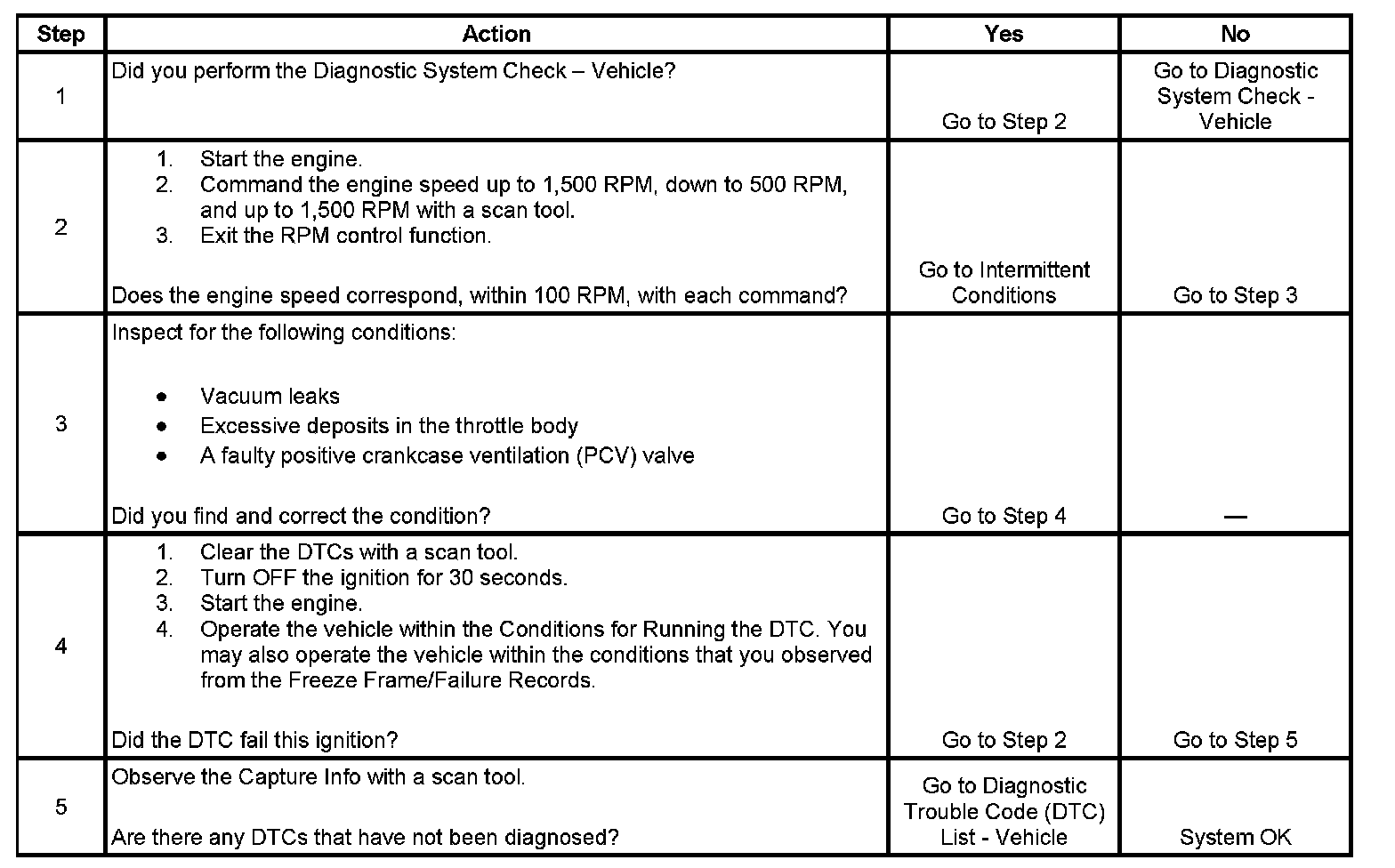 - The actual idle speed is approximately 100 RPM greater than the desired idle speed.
