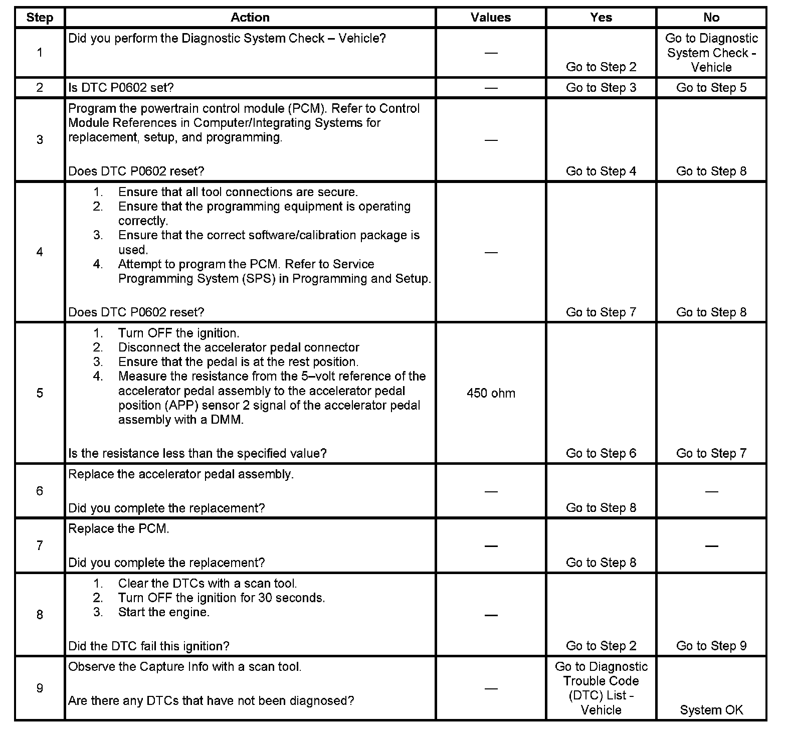 2. A DTC P0602 indicates that the PCM is not programmed.