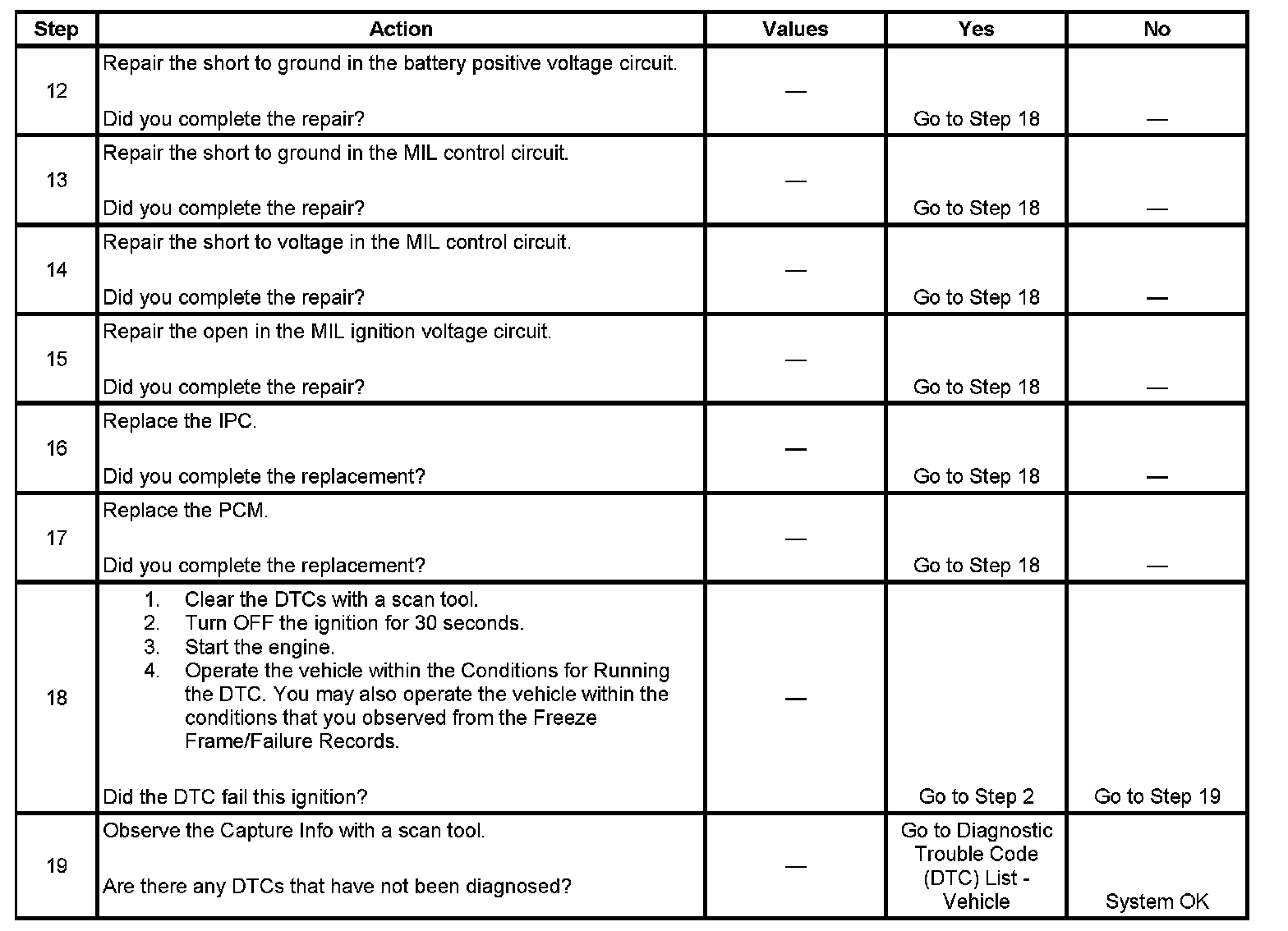 - The control module detects that the commanded state of the MIL driver and the actual state of the control circuit do not match.