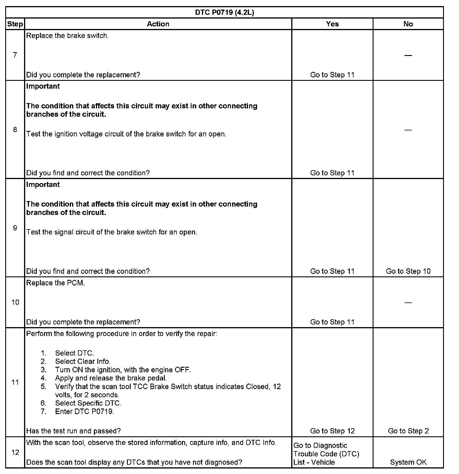 ^ The PCM stores DTC P0719 in PCM history.