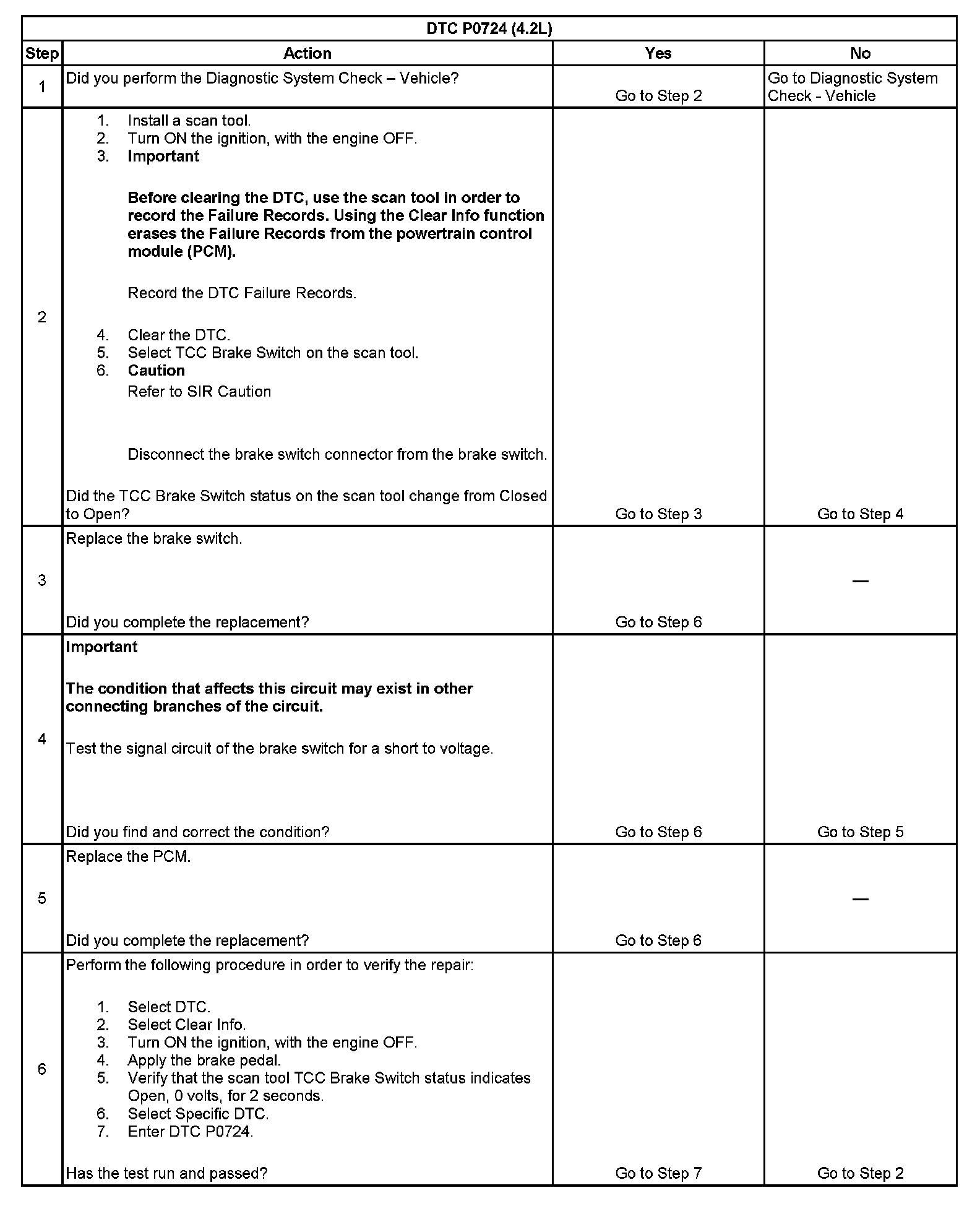 ^ The PCM stores DTC P0724 in PCM history.
