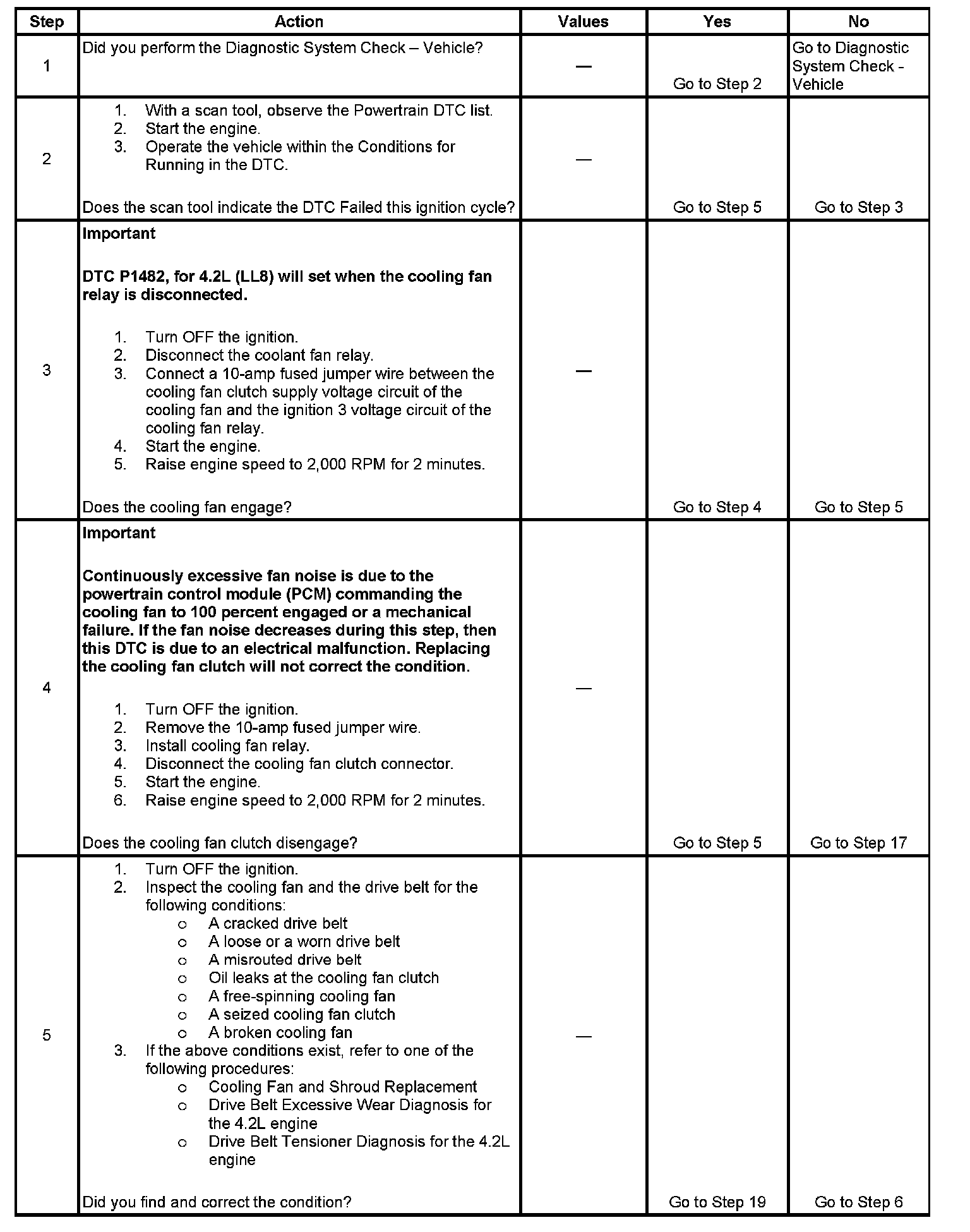5. This step tests the PCM's ability to control the cooling fan. If answer to question is Yes, refer to all Diagnostic Aids.