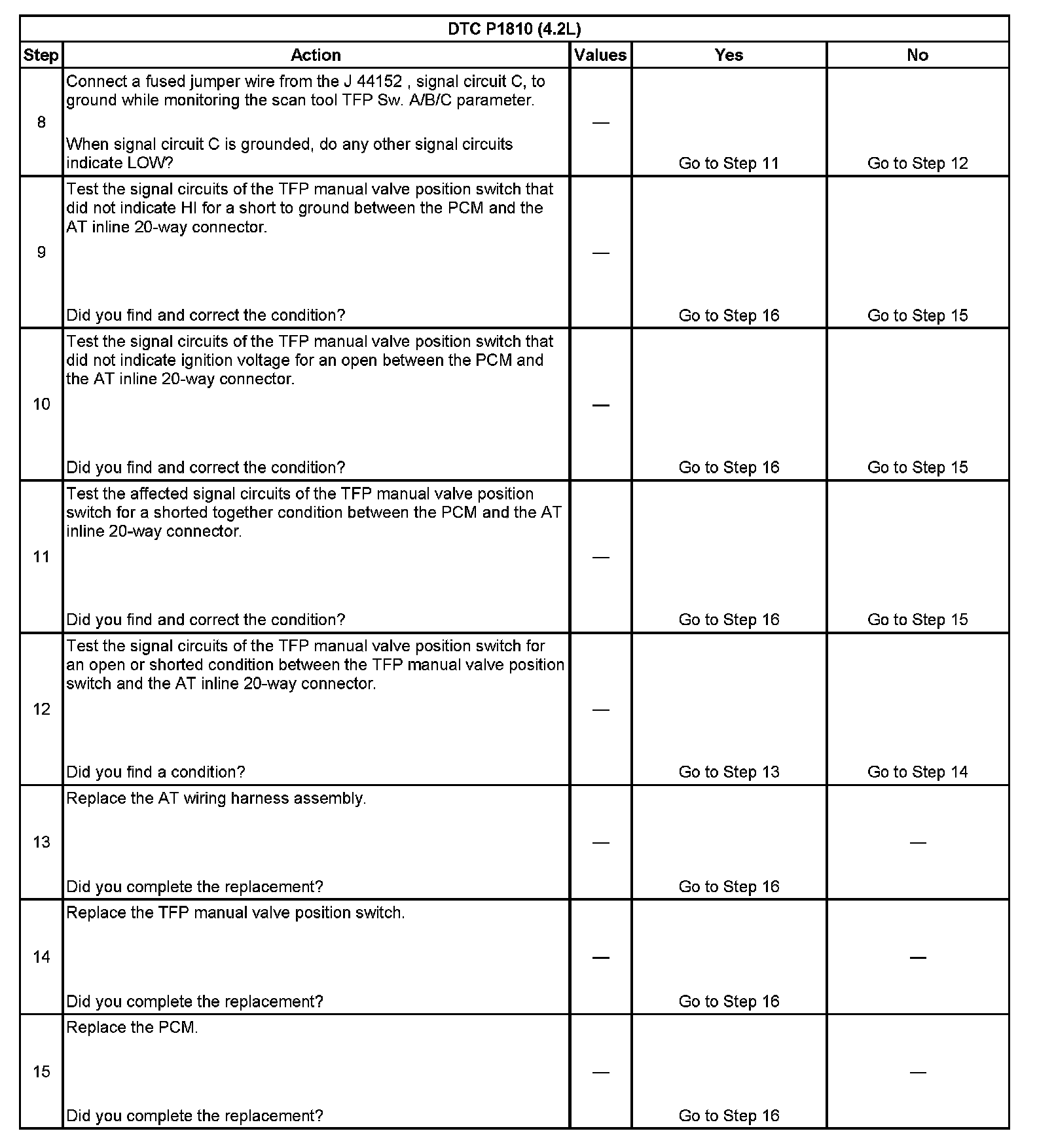 DTC P1810 Transmission Fluid Pressure (TFP) Position Switch Circuit
