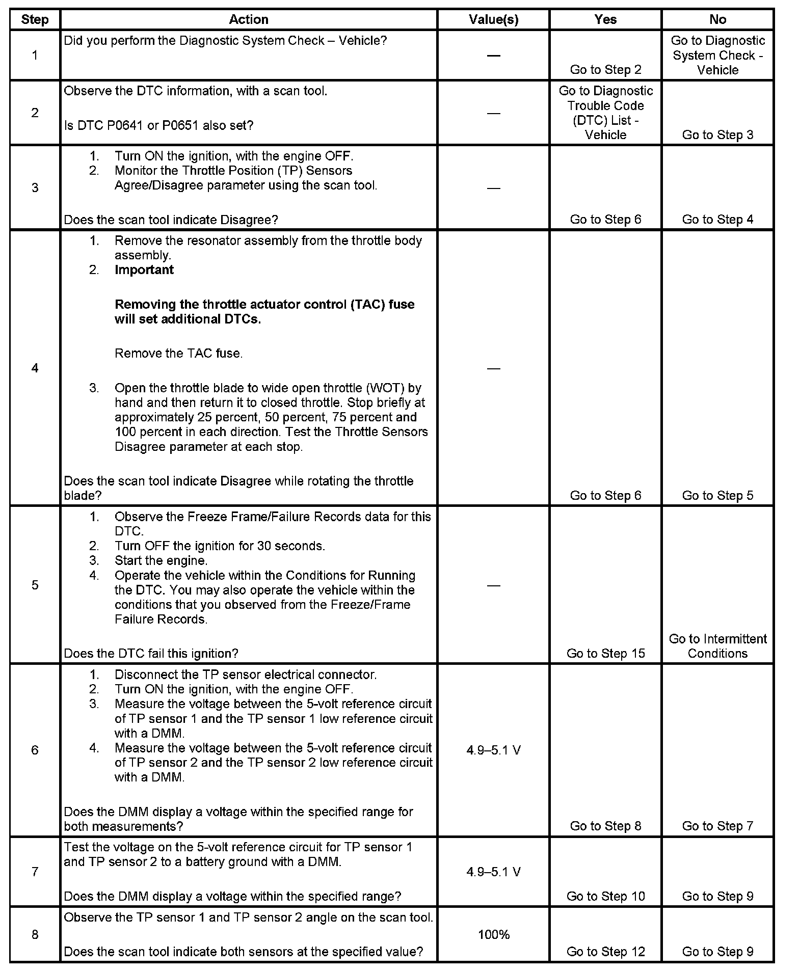 6. This step checks the integrity of the 5-volt reference and ground circuits of the TP sensors.