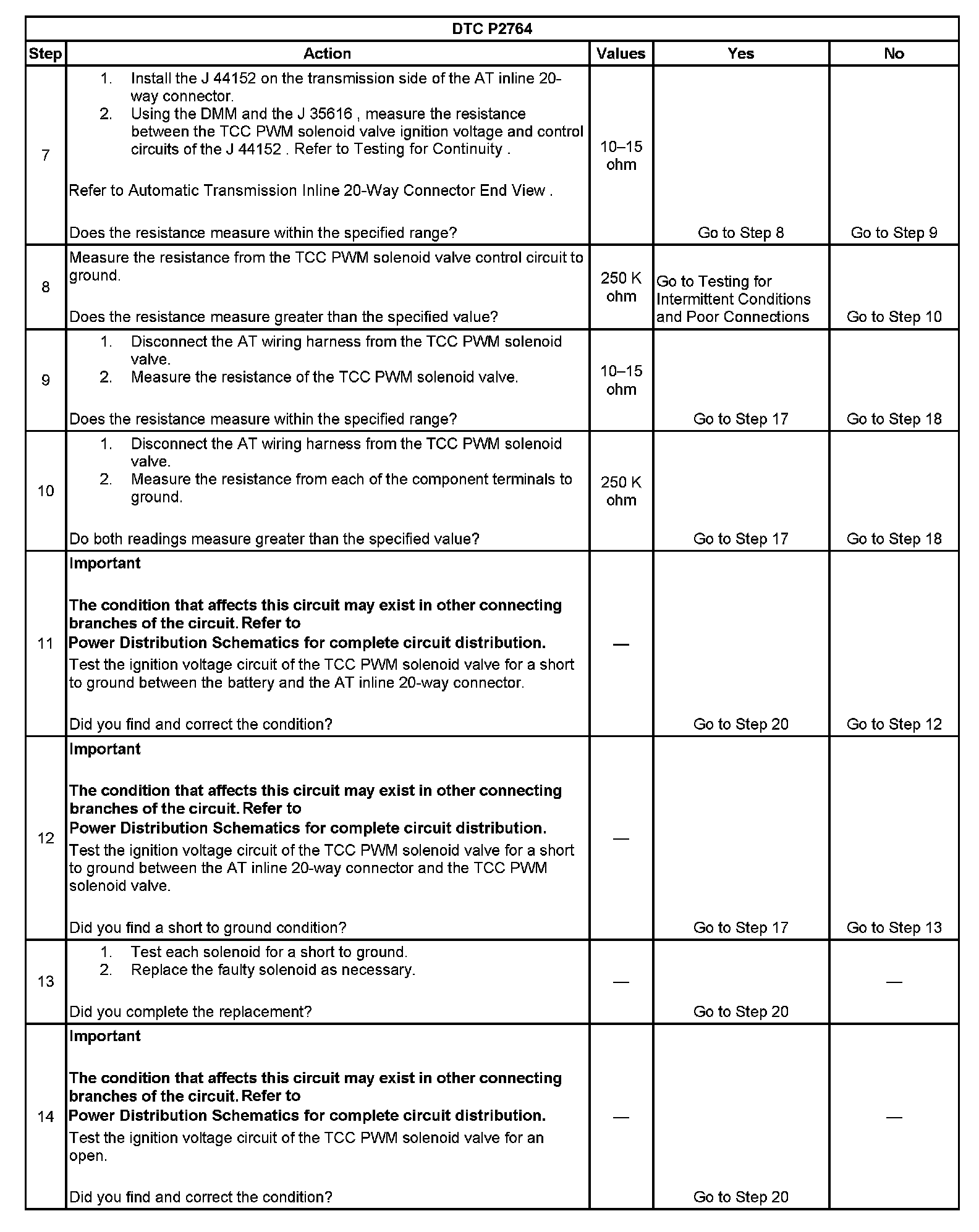 7. This step tests the resistance of the TCC PWM solenoid valve and the automatic transmission wiring harness.
