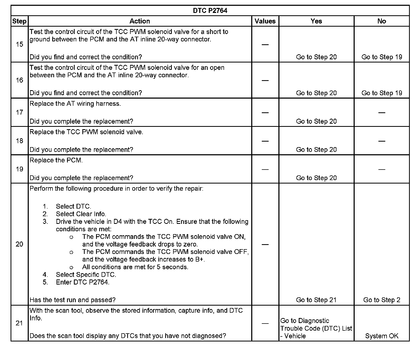 DTC P2764 Torque Converter Clutch (TCC) Pressure Control (PC) Solenoid Control Circuit Low Voltage