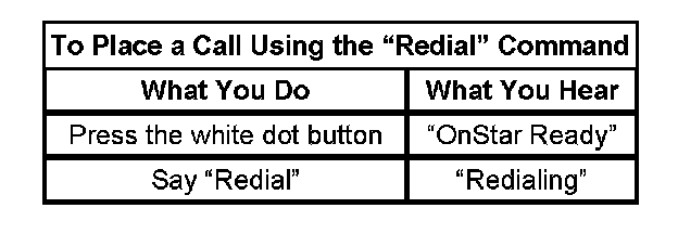The hand free, OnStar(R) personal calling (OPC) cellular phone feature is an additional option to the OnStar(R) system. This feature is already embedded within the vehicle communication interface module (VCIM), however, it must be activated by an OnStar(R) advisor. This is done most often during the initial OnStar(R) configuration, if the home location of the vehicle is in a geographic area where OnStar(R) personal calling is available. In the event this feature is not enabled, customers may connect to the OnStar(R) Call Center by pressing the blue OnStar(R) button, and asking an advisor if OPC is available in their area. Users of the Generation 6.1 OnStar(R) system can verify the system has been configured for OnStar(R) Personal Calling by pressing the answer/end call button, waiting for the system to respond "OnStar Ready" then speaking the word "dial." If the system responds with a failure message, the system has not been configured for OPC. All other responses confirm that OPC has been enabled.
