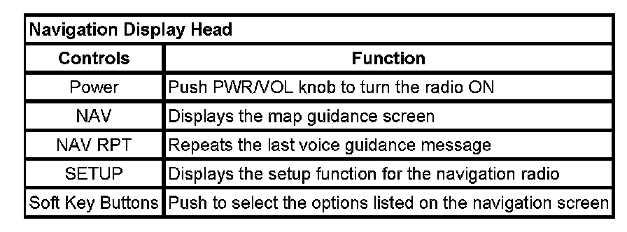 This component acts as the operator interface for the audio system, provides the data input from the operator to the navigation system and provides navigation information to the operator via the display screen. The navigation radio, located in the center of the instrument panel, provides the following: