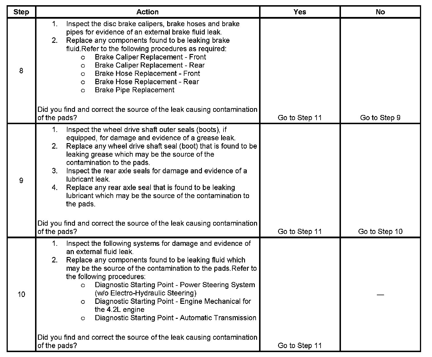 10. Lubricant leaks from non-brake system components may come in contact with and contaminate brake system components.