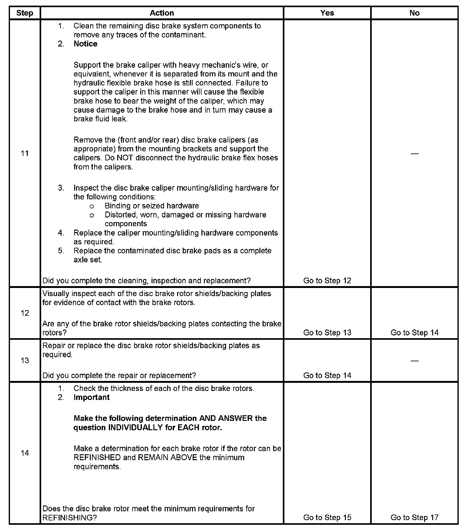 12. Disc brake rotor shields/backing plates that come in contact with disc brake rotors may cause brake system noise.