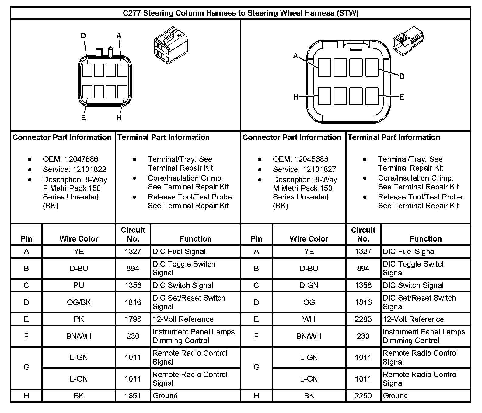 C277 Steering Column Harness To Steering Wheel Harness (STW):