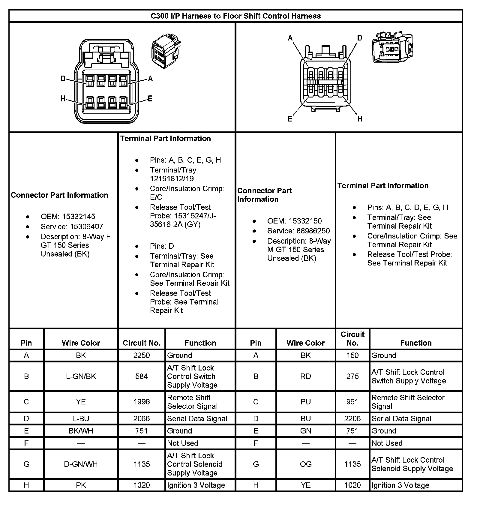 C300 I/P Harness To Floor Shift Control Harness: