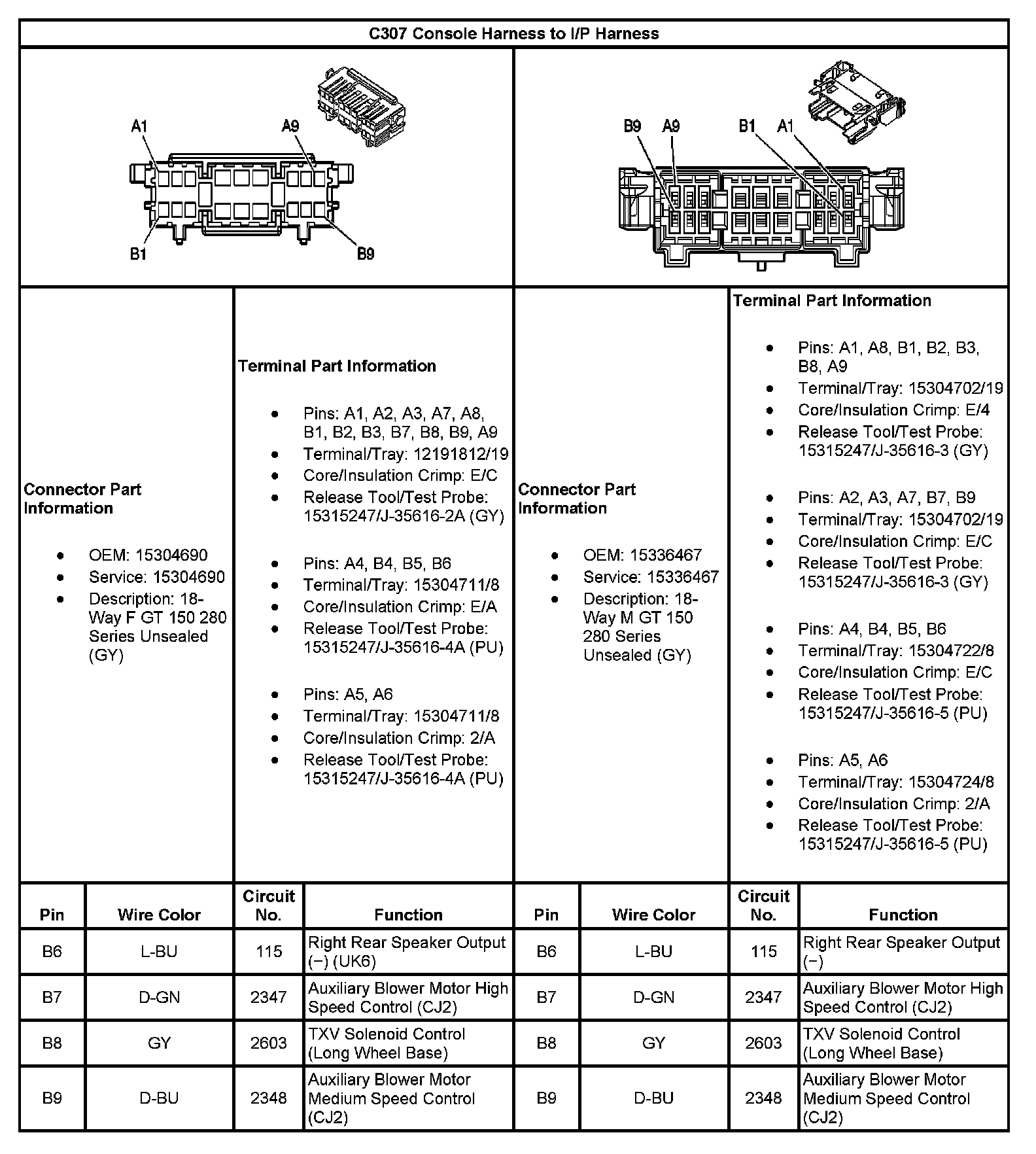 C307 Console Harness To I/P Harness (Part 2):