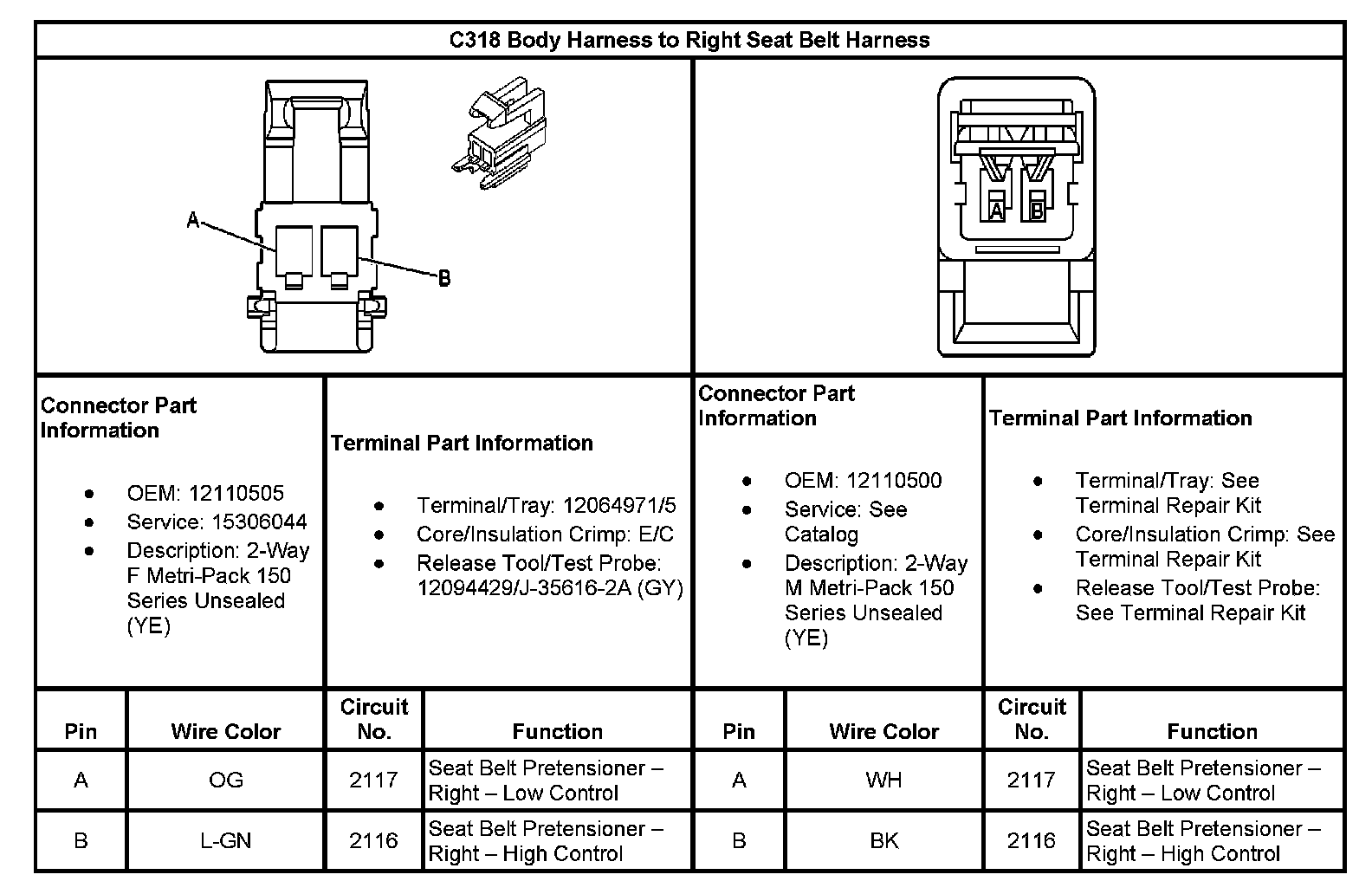 C318 Body Harness To Right Seat Belt Harness:
