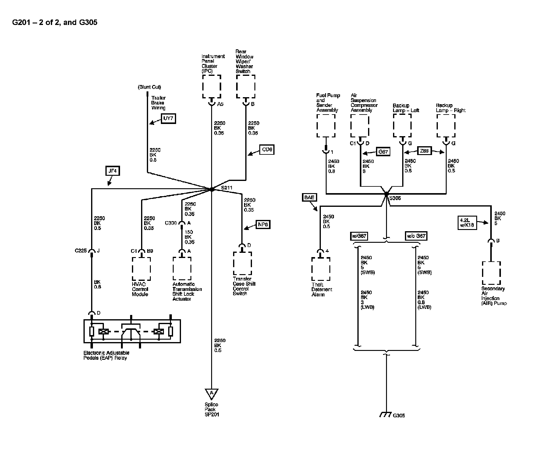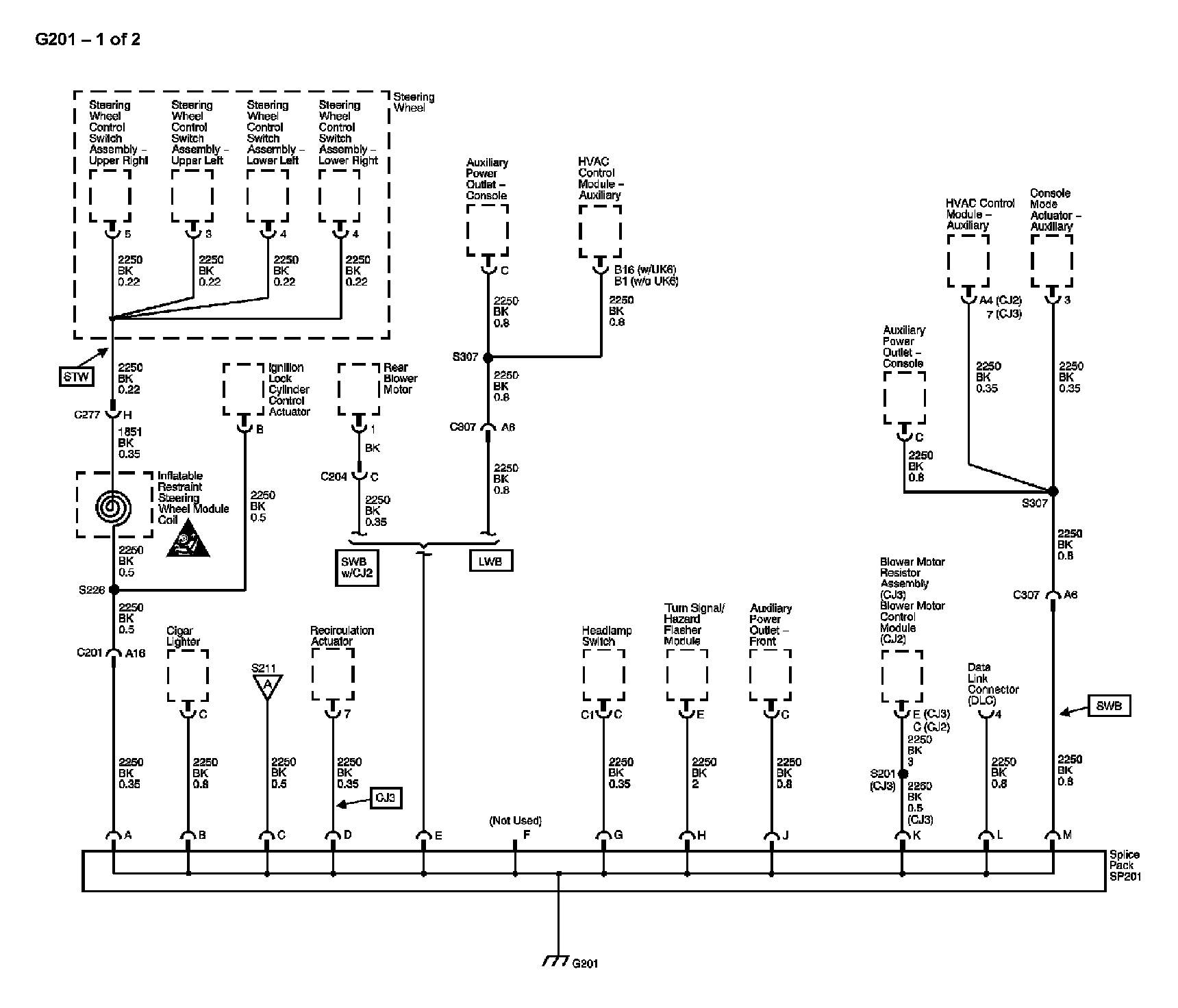 The locations for the Connectors, Grounds, Splices, and Grommets shown within these diagrams can be found via their numbers at Vehicle Locations.