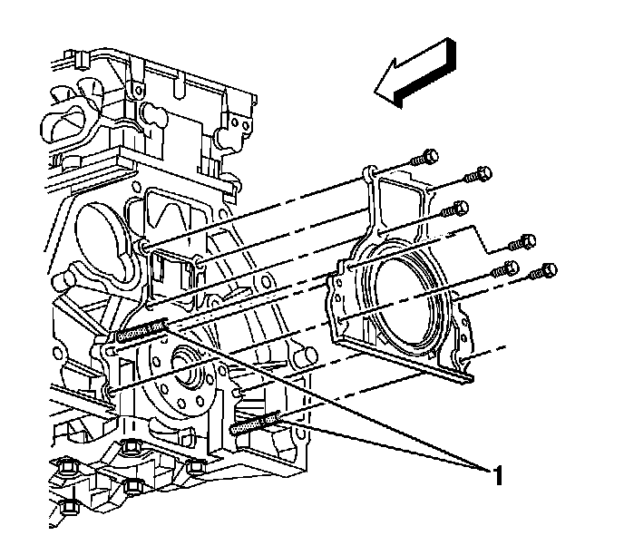 3. Apply a 3 mm (0.12 inch) bead of sealant to the rear oil seal housing (1). Refer to Sealers, Adhesives, and Lubricants for the correct part number.