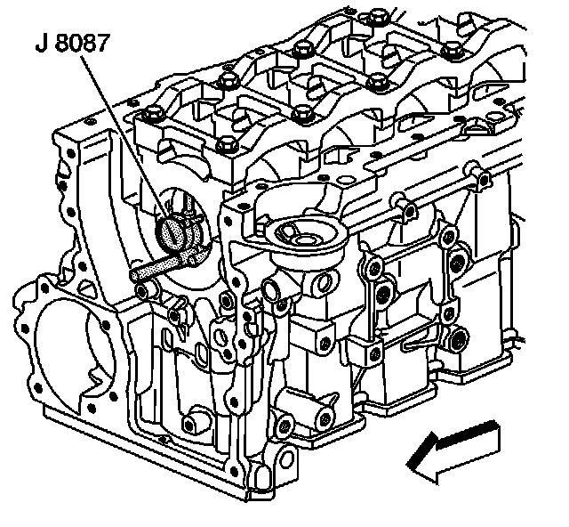 16. Inspect the crankshaft main bearing bores. Use J 8087 to measure the bearing bore concentricity and alignment.