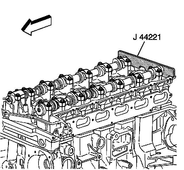 1. Install J 44221 with the camshaft flats up and the number 1 cylinder at top dead center. The crankshaft pin should be at 12 o'clock when the number 1 piston is at top dead center.