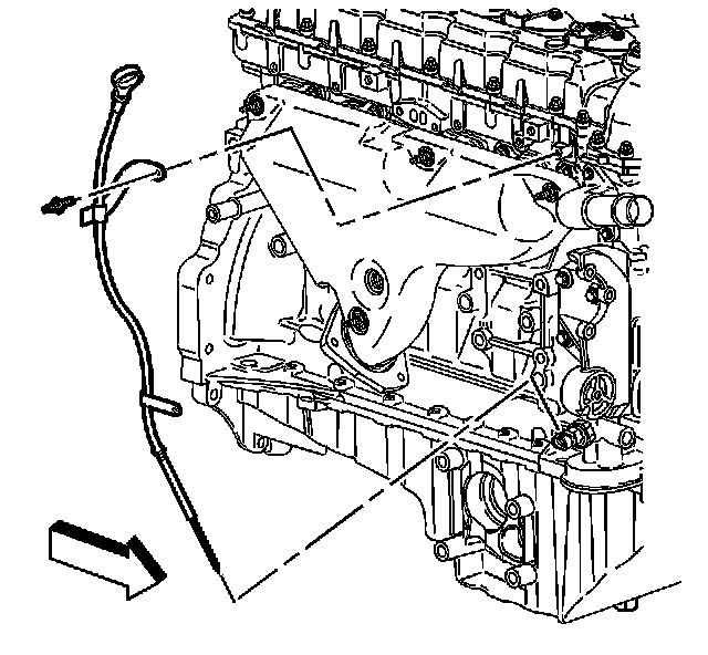 2. Add sealant GM P/N 12346004 (Canadian P/N 10953480) to the oil level indicator tube stud threads.