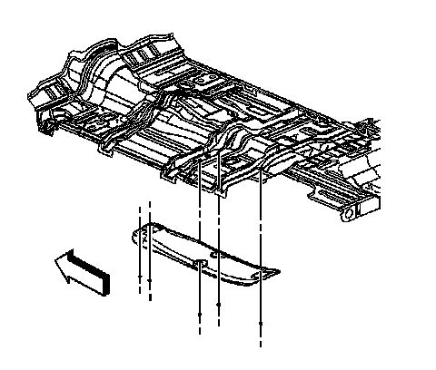 1. Install the muffler heat shield to the floor panel studs placing the muffler heat shield under the rear part of the converter heat shield.