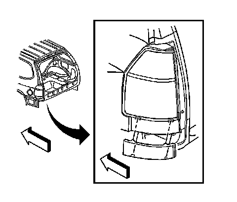 1. Install the trim to the tail lamp, ensuring that the retaining tabs are fully seated.