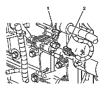 2. Disconnect the harness electrical connector (2) from the evaporative emission (EVAP) canister purge valve (1).