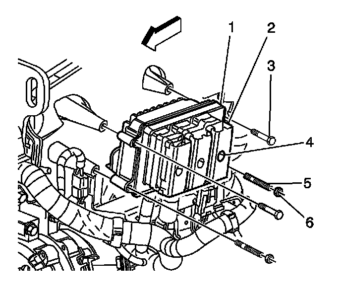 3. Slide the PCM (1) off of the studs (5) and position the PCM out of the way.