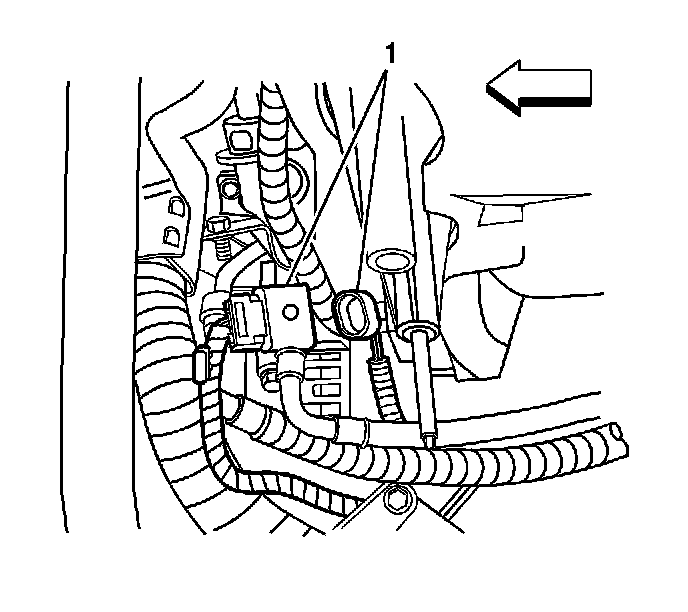 1. Install the EVAP/fuel hose/pipe assembly into the clip (1) at the rear of the transmission.