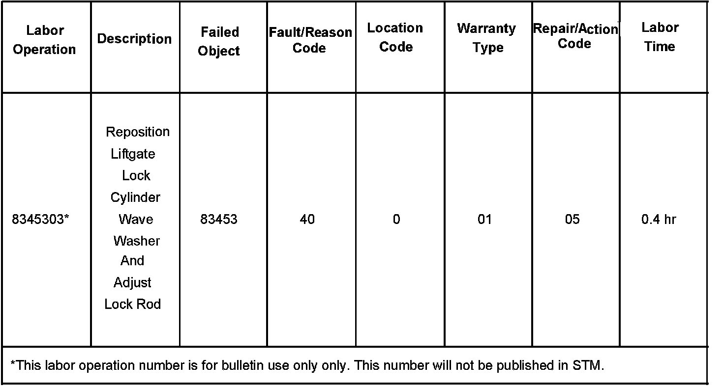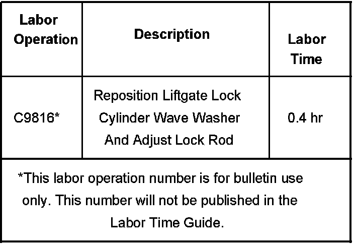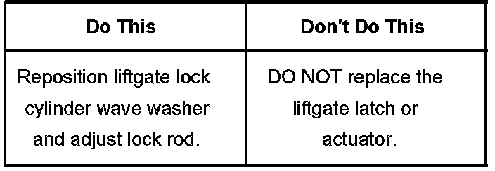 Rear Liftgate Glass May Not Lock When Using Remote Keyless Entry (RKE), Key Fob Transmitter or Door Lock Switch, And/Or Liftgate Hatch Or Liftgate Glass May Lock Then Unlock When Rear Liftgate Glass Button is Depressed (Reposition Lock Cylinder Wave Washer and Adjust Lock Rod)