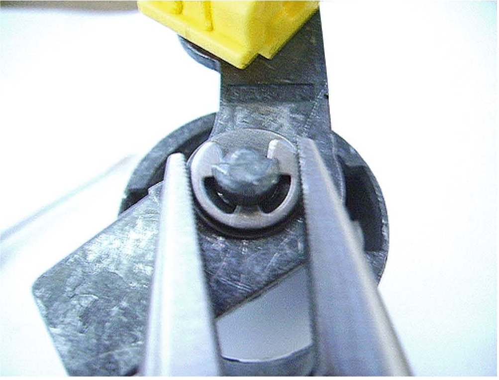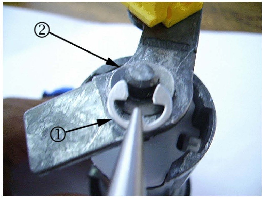 Install the C-clip onto the shaft and in the slot using needle nose pliers. Then rotate the pawl several times to make sure the C-clip does not rotate. If the clip rotates then the clip is not fully seated.
