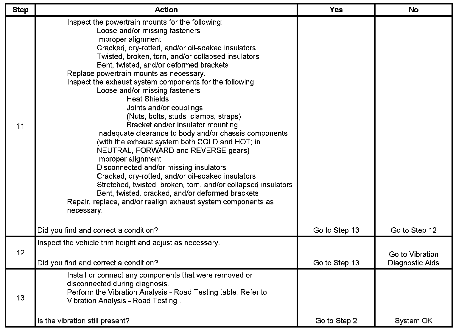 11. Damaged or worn engine, transmission, and/or exhaust mounts may cause a noise or vibration that may be transferred into the passenger compartment.
