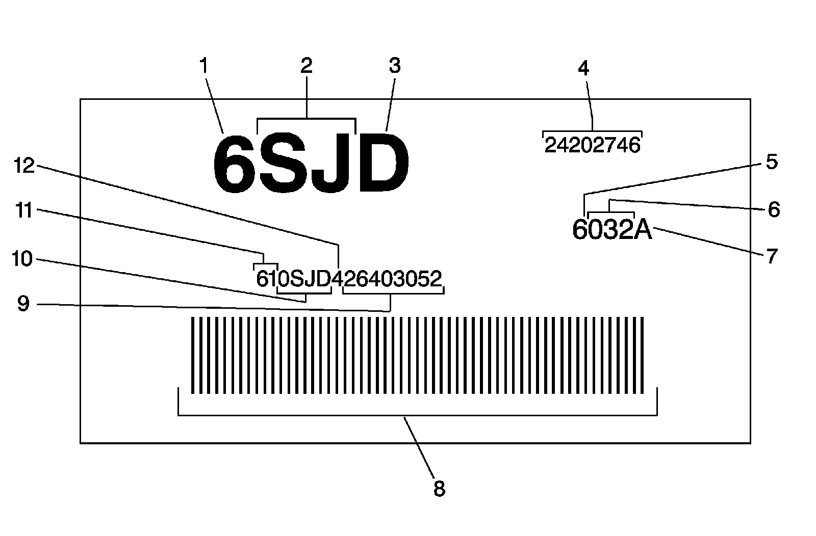 8 - Optional Transmission ID Location, Tag is Used as a Back-up if Unable to Etch Case/Pan Area and to Bar Code Scan